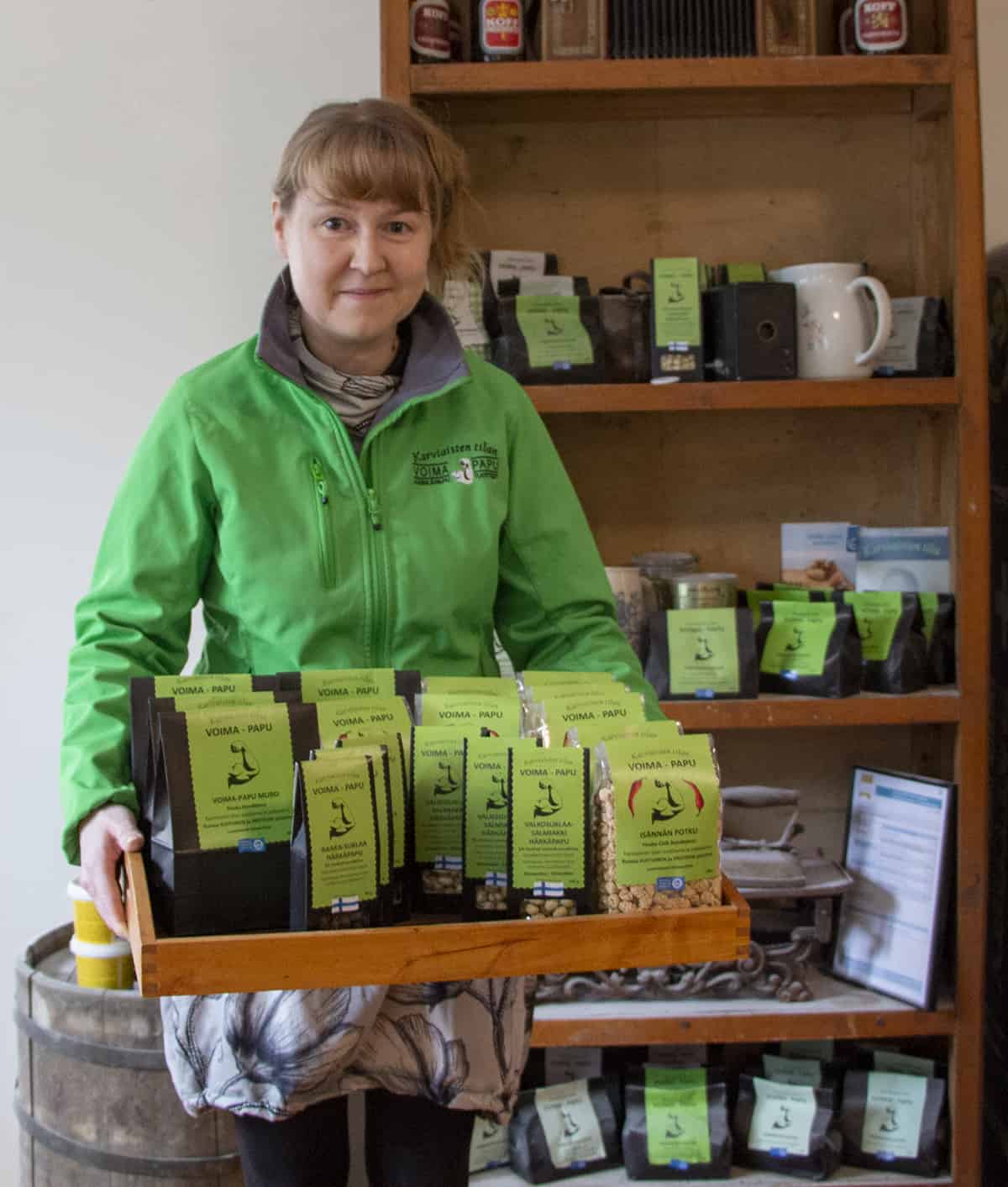 Salon Angelniemellä sijaitseva Voima-papu sai alkunsa vuonna 2016, kun Karviaisten tilan viljelijäpariskunta Katriina ja Martin Klinckowström kokeilivat pelloillaan härkäpapua. Alkuperäinen suunnitelma oli tuottaa härkäpapua kalanrehuksi, mutta mökkinaapurin puheet saivat Katriinan kiinnostumaan tuotteesta ihan ihmisravinnoksi.