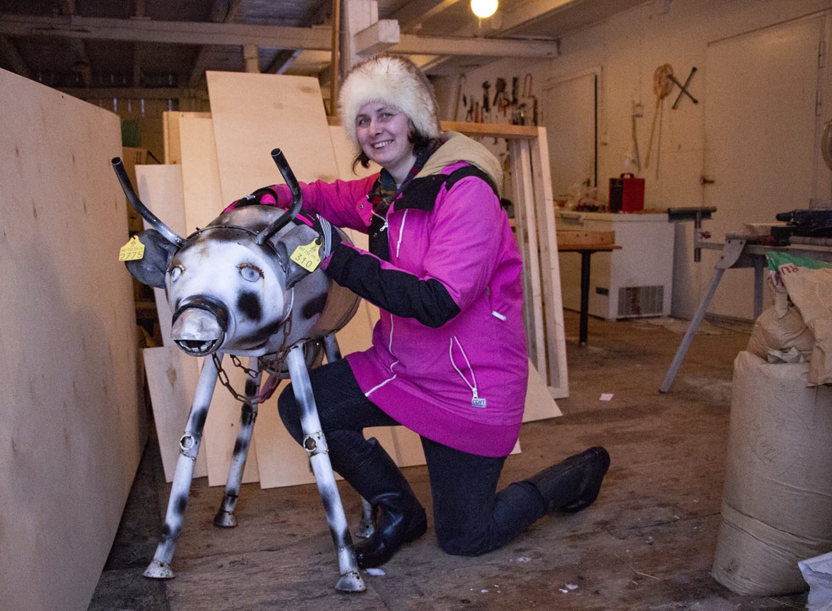 Hankkeen koordinaattori agrologi Katja Mahal on kuljettanut pakettiautolla koko messuosaston tarpeet Saksaan. Viimeiset viikot ovat kuluneet tiiviisti näyttelyn valmisteluissa. Näyttelysermejä viimeisteltiin vielä viikkoa ennen messuja. Näyttelyn toteutukseen on osallistunut myös Marika Sarha, jolla on runsaasti kokemusta lehmätaiteen työpajojen vetämisestä.