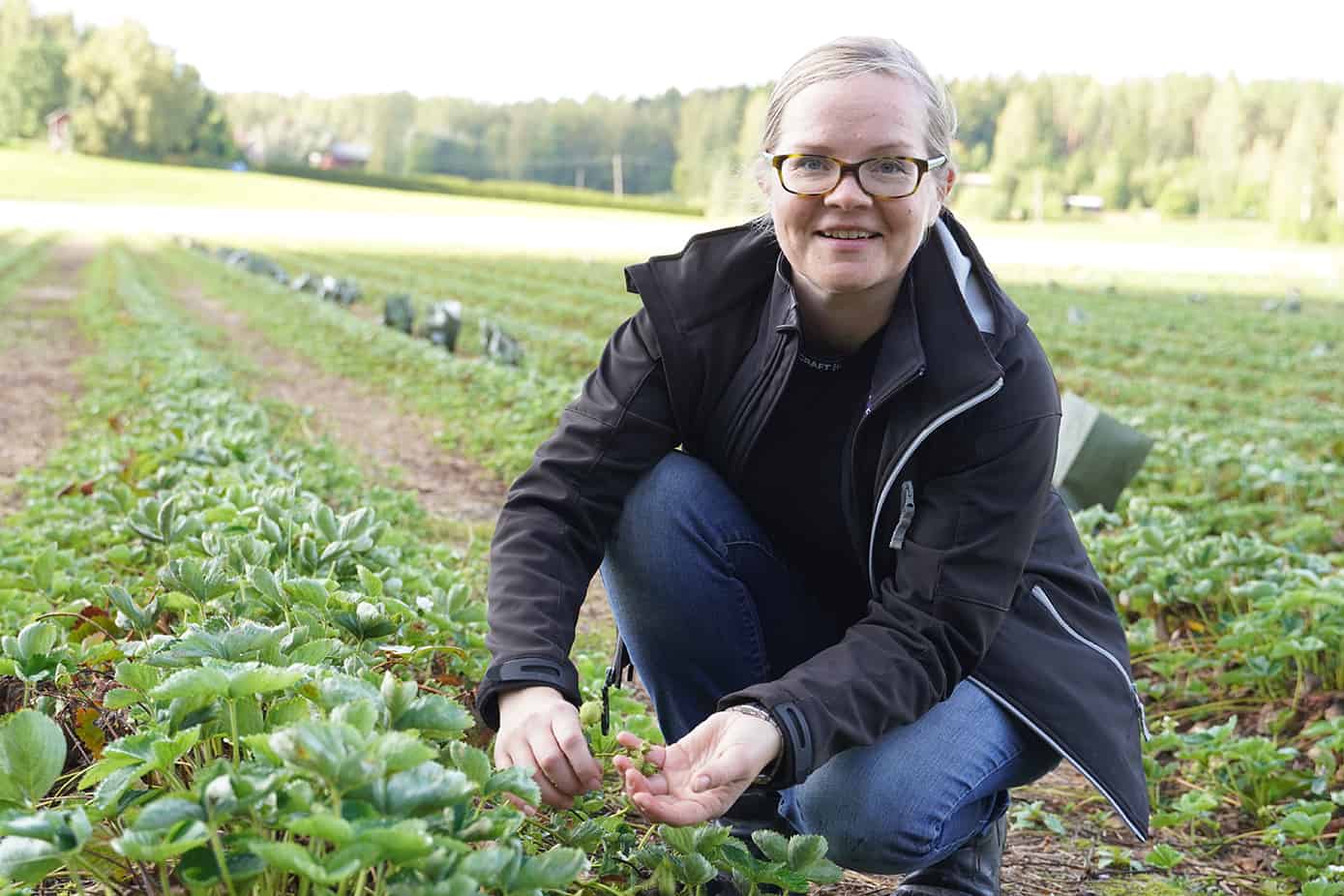 Laatumarja-hankkeen asiantuntija Minna Pohjola viljelee itsekin mansikkaa Salon Kiskossa. Vaikka hänen tilansa ei ole mukana hankkeessa, on hyvä saada omakohtaista kokemusta myös viljelytyöstä.