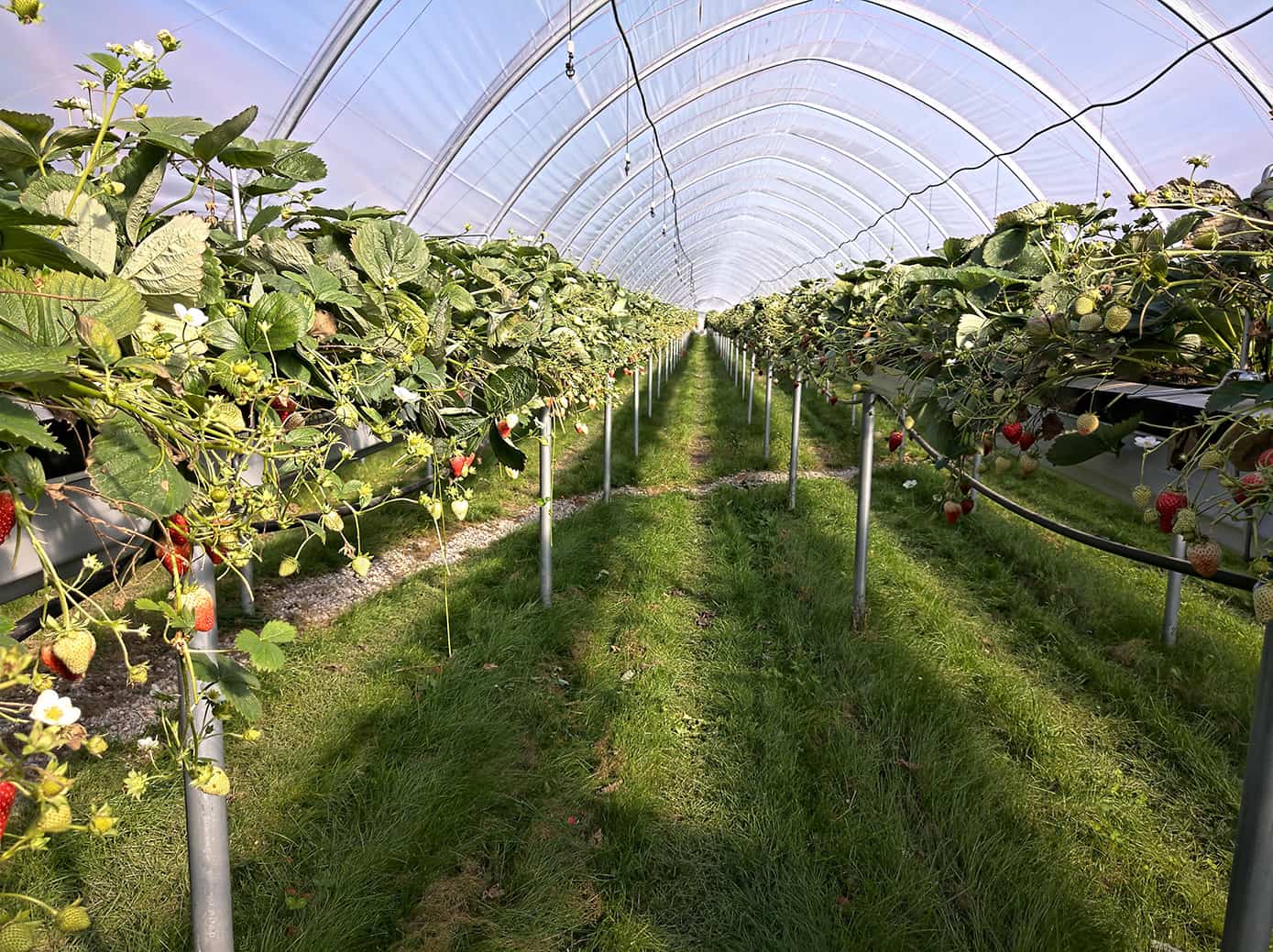 Kasvutunneleissa marjat voi istuttaa suoraan poimintakorkeudelle. Kuva: Minna Pohjola.