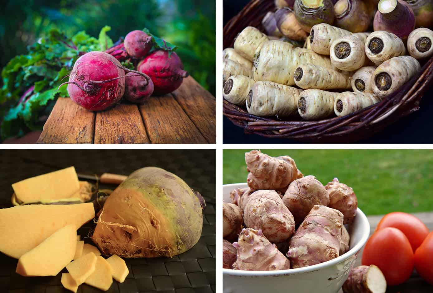 Hankkeessa on parhaillaan käynnissä juuresviikot. Kuvassa punajuuri, palsternakka, lanttu ja maa-artisokka.