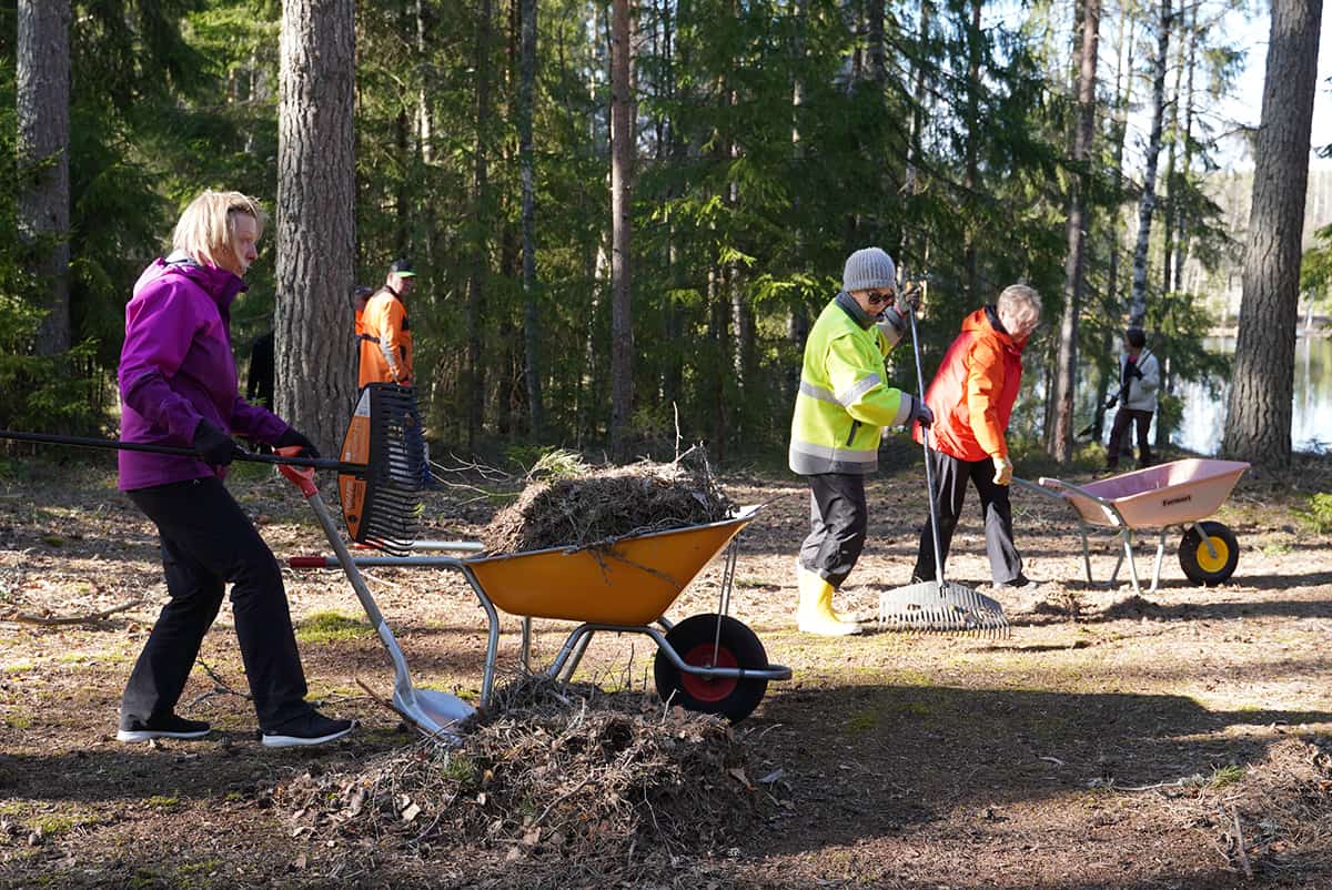 Tiskarlan kylän talkoolaiset laittoivat Vähäjärvellä paikkoja kuntoon kesäkautta varten maanantaina 9. toukokuuta.