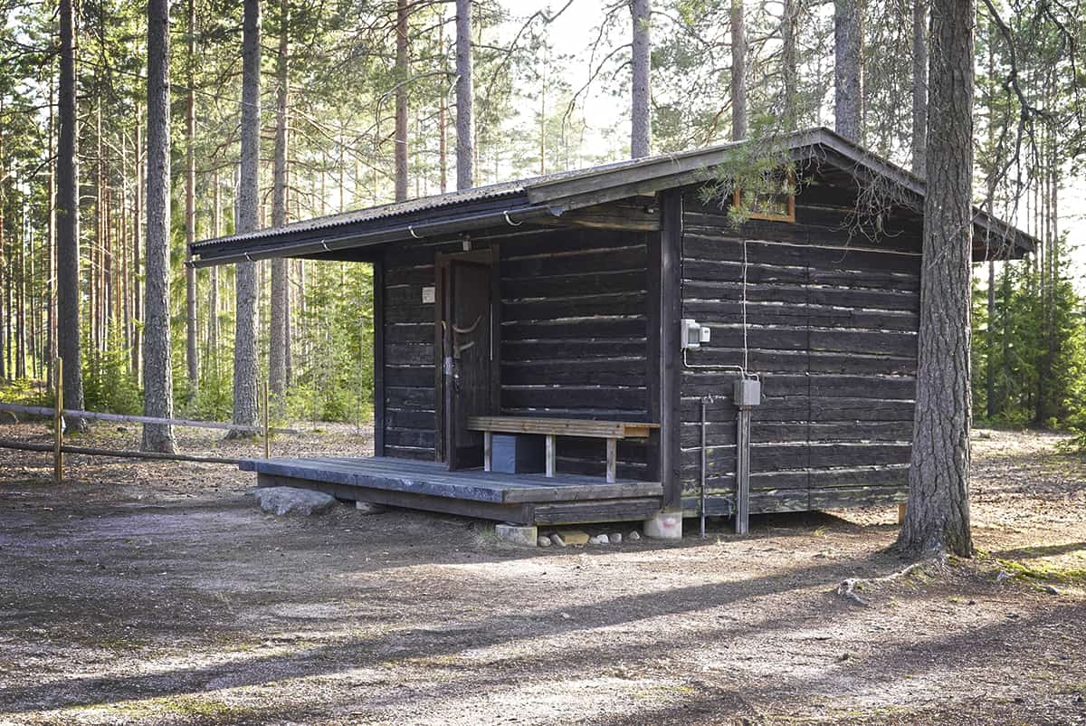 Majoitusta tarjoava musta mökki on rakennettu Ylikulman koulun vanhoista hirsistä.