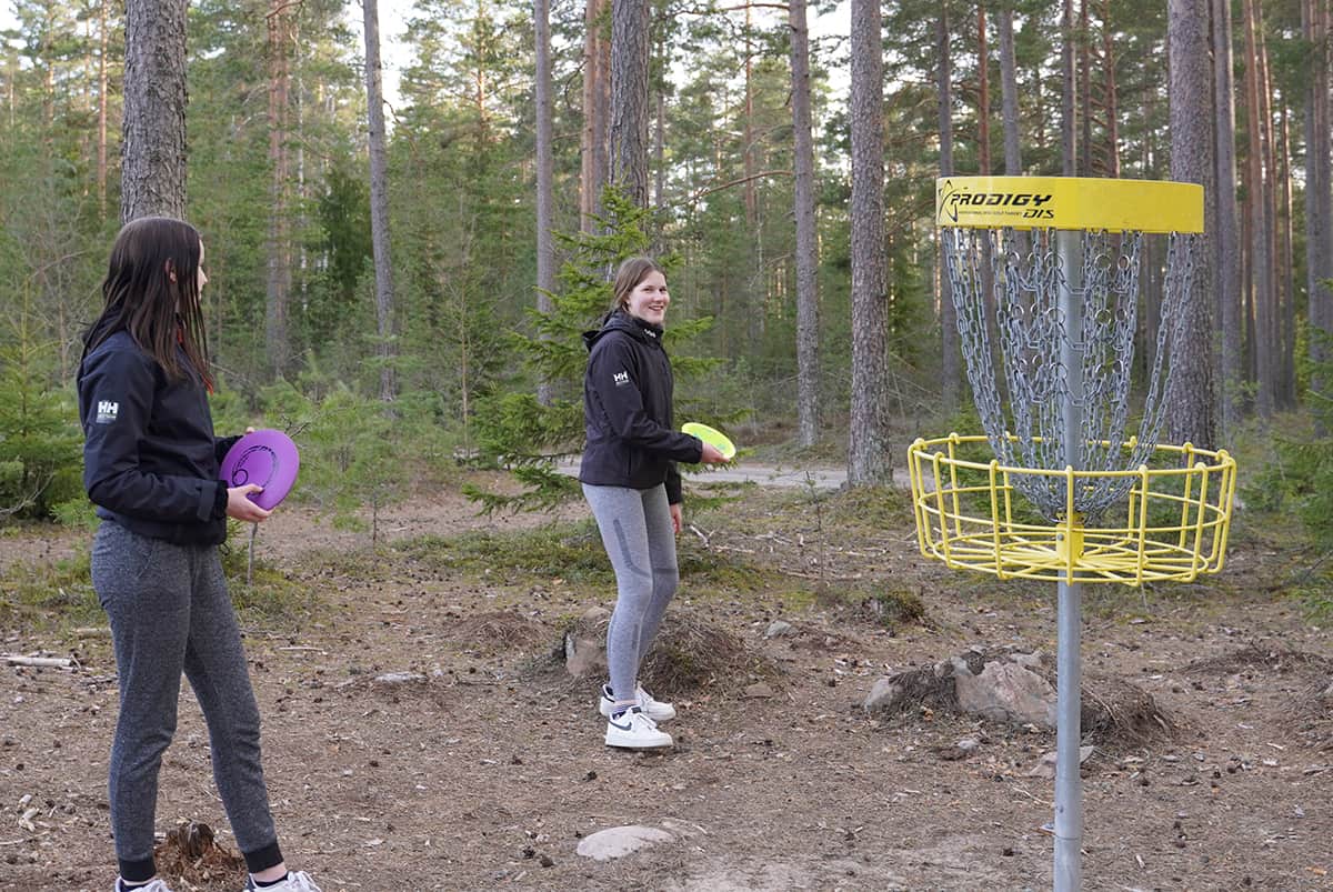 Lähistöllä asuvat Katri Lehtinen ja Maria Tuominen ovat käyneet muutaman kerran heittämässä Vähäjärven radan läpi. “Kiva, mutta tosi vaikea”, nuoret kommentoivat.