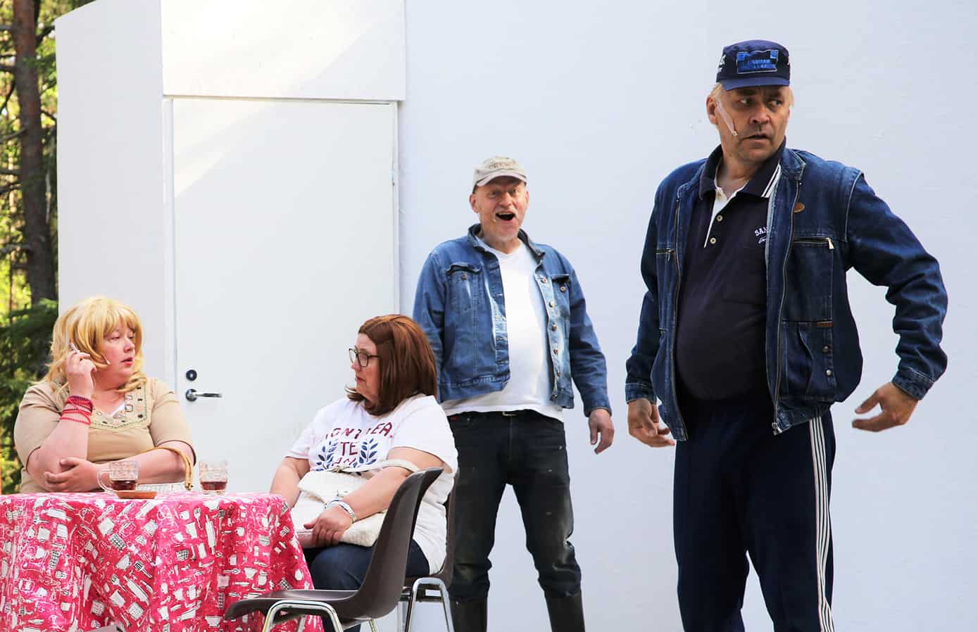 Draaman protagonistia eli Erkki Metsolaa näyttelee teatteriyhdistyksen puheenjohtaja Jani Hägg. Antagonistin eli Kari Kaukovaaran roolin on saanut naapurikylän Matti Salminen. Kumpikin onnistuu rooleissaan loistavasti. Kummallakin on näyttämölle täydellinen tunnistettava ääni ja taito näytellä sekä pienin ilmein että koko kehon voimin. Salmisen roolityö kirvoittaa parhaat naurut ja Hägg taas onnistuu vakuuttamaan hahmonsa kasvutarinalla. Viinaan menevästä ja äidin helmoissa pyörivästä peräkammarin pojasta kasvaa sisukas yrittäjä, joka oppii pelaamaan Kaukovaaran säännöillä.