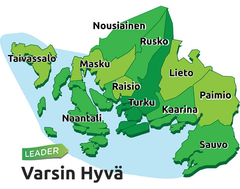 Varsinais-Suomessa on viisi Leader-ryhmää: Turun seudulla toimiva Varsin Hyvä, saaristossa toimiva I samma båt – Samassa veneessä, Loimaan seudulla ja Somerolla toimiva Jokivarsikumppanit, Vakka-Suomessa ja Satakunnassa toimiva Ravakka sekä Salon seudulla ja Uudenmaan puolella toimiva Ykkösakseli.