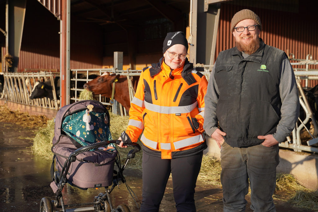 Pietinmäen tilan yrittäjät Henri ja Katja Hartikainen tarvitsevat nyt lomittajia useampia, sillä Katja on äitiyslomalla hoitamassa parikuista vauvaa ja nelivuotiasta esikoista.