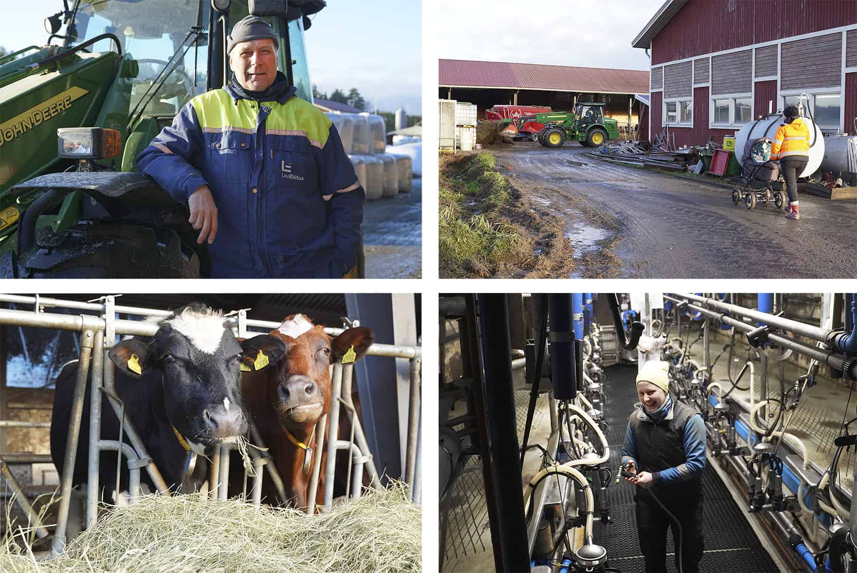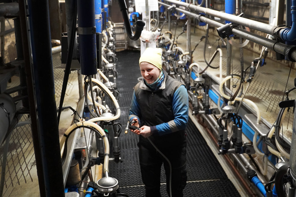 – Periaatteessa tämä on kolme hengen työpaikka, mutta työmäärä vaihtelee. Nyt meidän 80 lehmästä vain 60 on lypsäviä, mutta tammikuussa työmäärä kasvaa, kun lehmät poikivat, he kertovat.