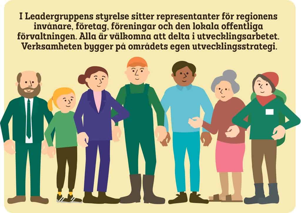 Leader är ett verksamhetssätt, vars bärande tema framförallt är den s.k. nerifrån upp- principen. Detta betyder att projektens beredning och beslutsmakt ligger hos ortens invånare, vilka har den bästa sakkunskapen om sin hembygd. Vem som helst kan komma med i verksamheten.