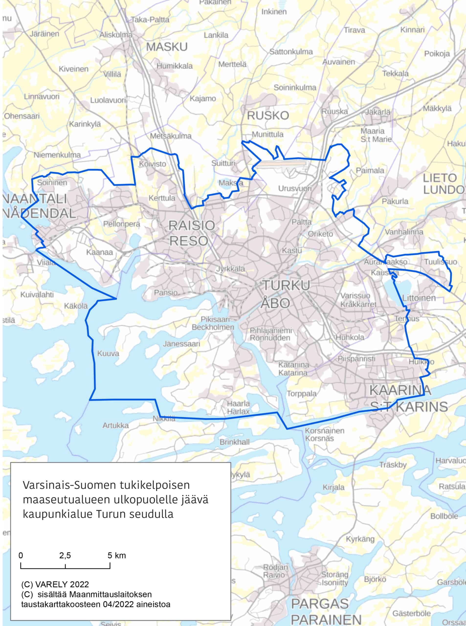 Tuettavan yrityksen täytyy sijaita maaseudulla. Varsinais-Suomessa maaseutuyritykseksi luetaan kaikki alueella sijaitsevat yritykset lukuun ottamatta Turun ja Salon ydinkeskustaa. Tarkistathan tarkat aluerajaukset alueesi Leader-ryhmästä tai Varsinais-Suomen ELY-keskuksesta.