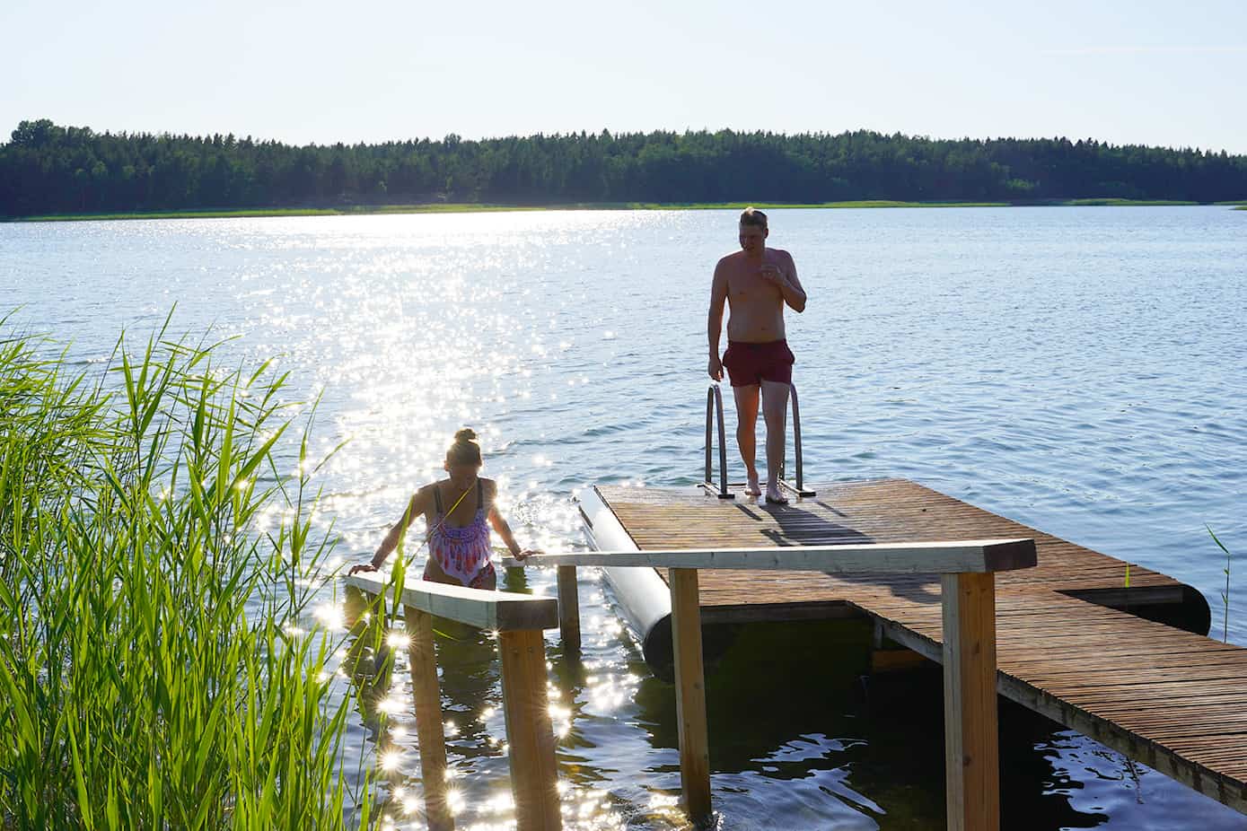 – Monilla on nykyään omat mökit, saunat ja rannat, mutta tämä on sellainen paikka, josta löytää aina seuraa. Viime kesänä, kun vietettiin yleistä saunapäivää, täällä oli lähes sata ihmistä ja muutenkin loma-aikaan väkeä riittää. Lapsille tämä on erityisen hyvä uimaranta, koska tämä on niin pitkään matala. Ja tänne pääsee myös omalla veneellä, puheenjohtaja esittelee.