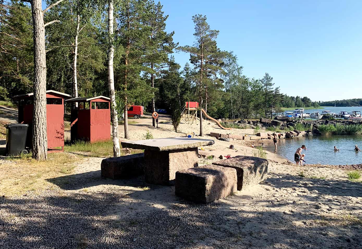 Nyt alueella on viihtyisä kohtaamispaikka kyläläisille. Rannalla on nuotiopaikka ja puuliiteri, josta saa käyttää puita. Alueelta löytyy myös ulkohuussi. Lapsille on liukumäki ja ikäihmisille loivat portaat suoraan meriveteen. Aluetta pidetään kunnossa talkoovoimin.