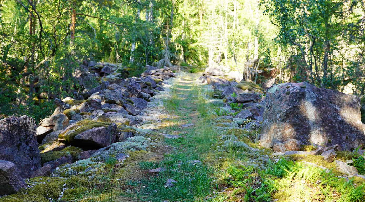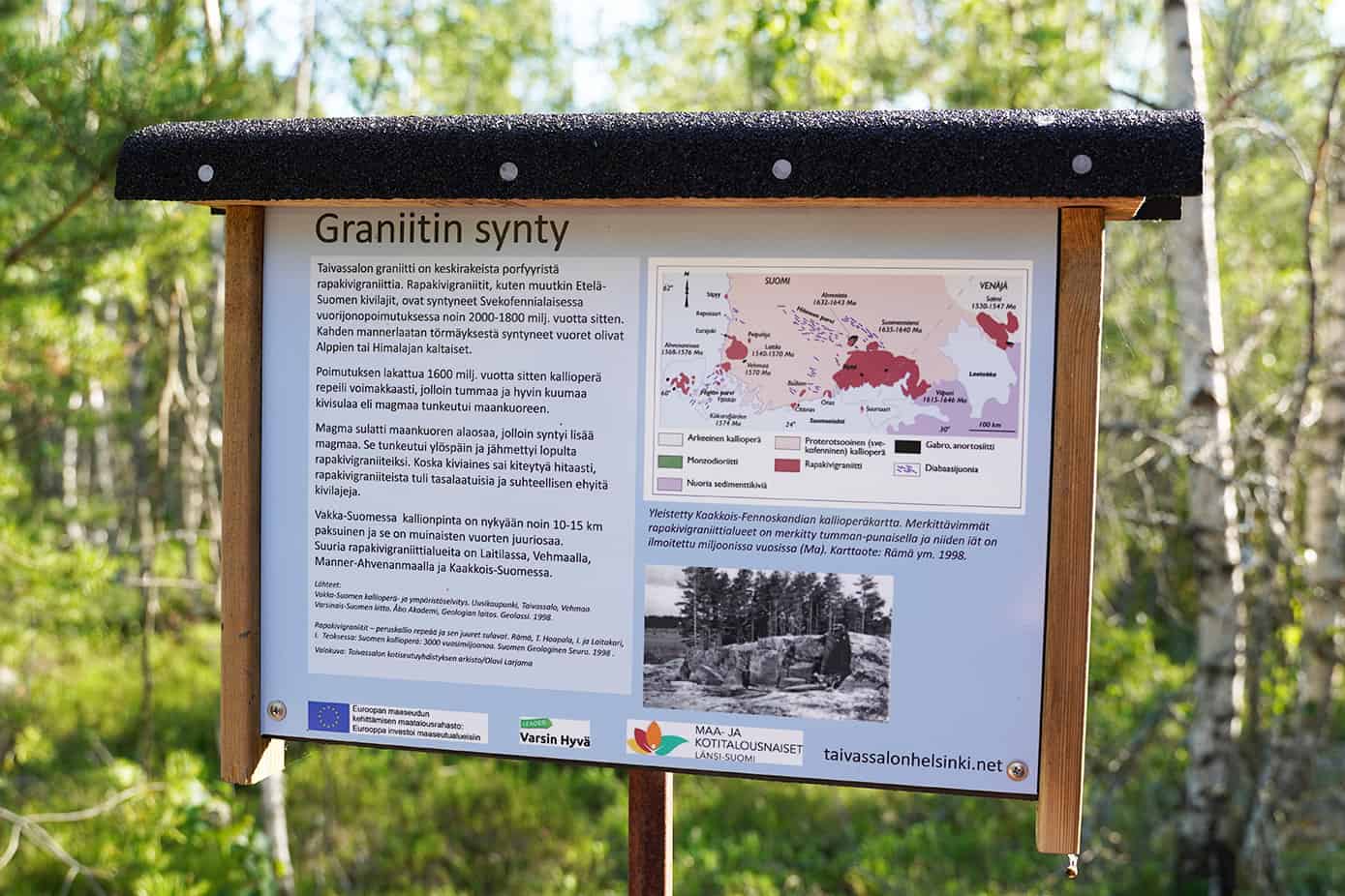 Louhospolku lähtee saunan takaa ja tutustuttaa kulkijansa alueella olleen louhostoiminnan historiaan.