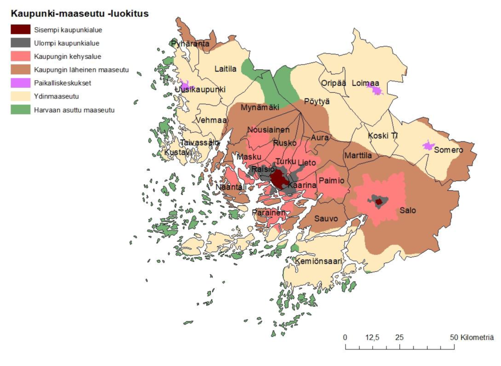 Maaseutuohjelmaa toteutetaan kaikilla muilla alueilla paitsi sisemmällä ja ulommalla kaupunkialueella.