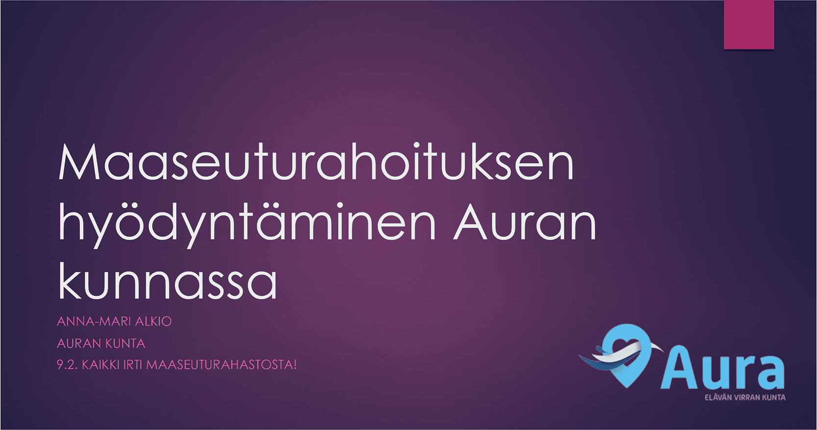 Maaseuturahoituksen hyödyntäminen kunnassa: Auran kunnan kehittämisjohtaja Anna-Mari Alkio