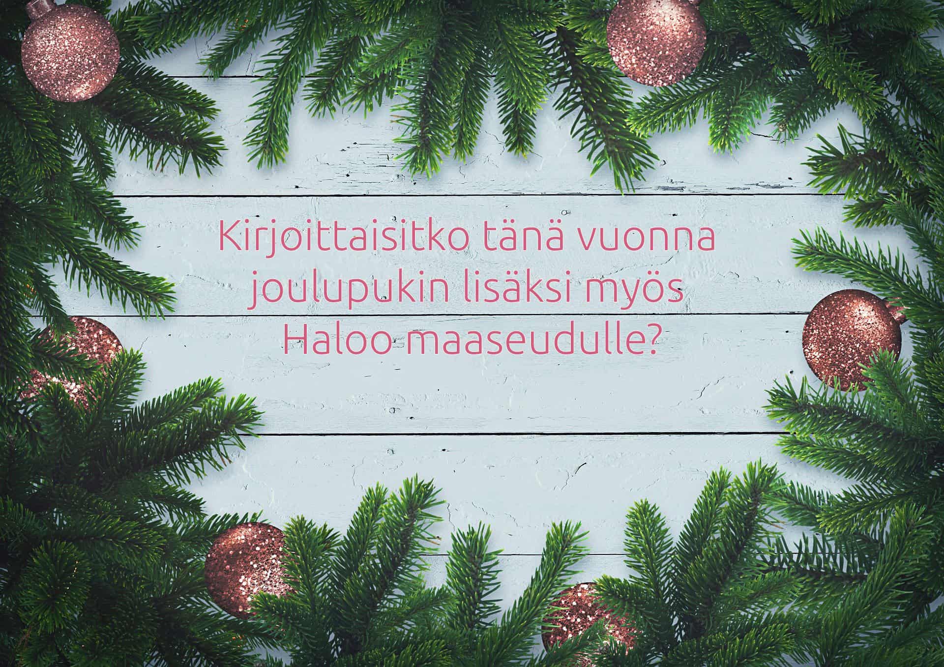 Kampanjan tarkoitus on virittää Haloo maaseudun lukijat joulutunnelmaan ja luoda hyvää joulumieltä. Tarinoiden parhaat palat ja tieto lahjoituksen saavasta yhdistyksestä julkaistaan jouluviikolla.