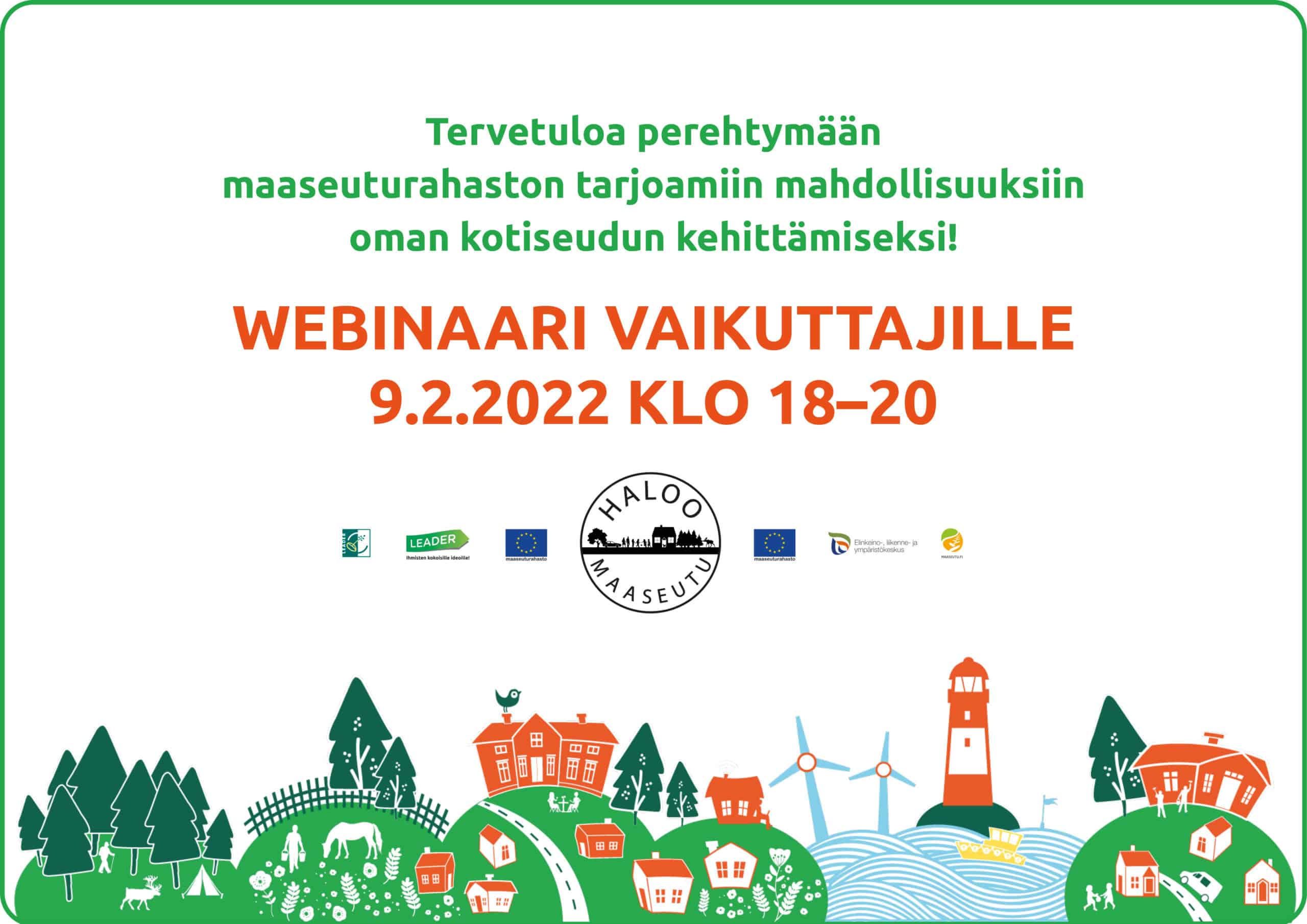 Tilaisuuden järjestää Varsinais-Suomen maaseutuverkoston yhteinen Haloo maaseutu -viestintähanke. Vastaava ruotsinkielinen webinaari järjestetään keskiviikkona 2. maaliskuuta.
