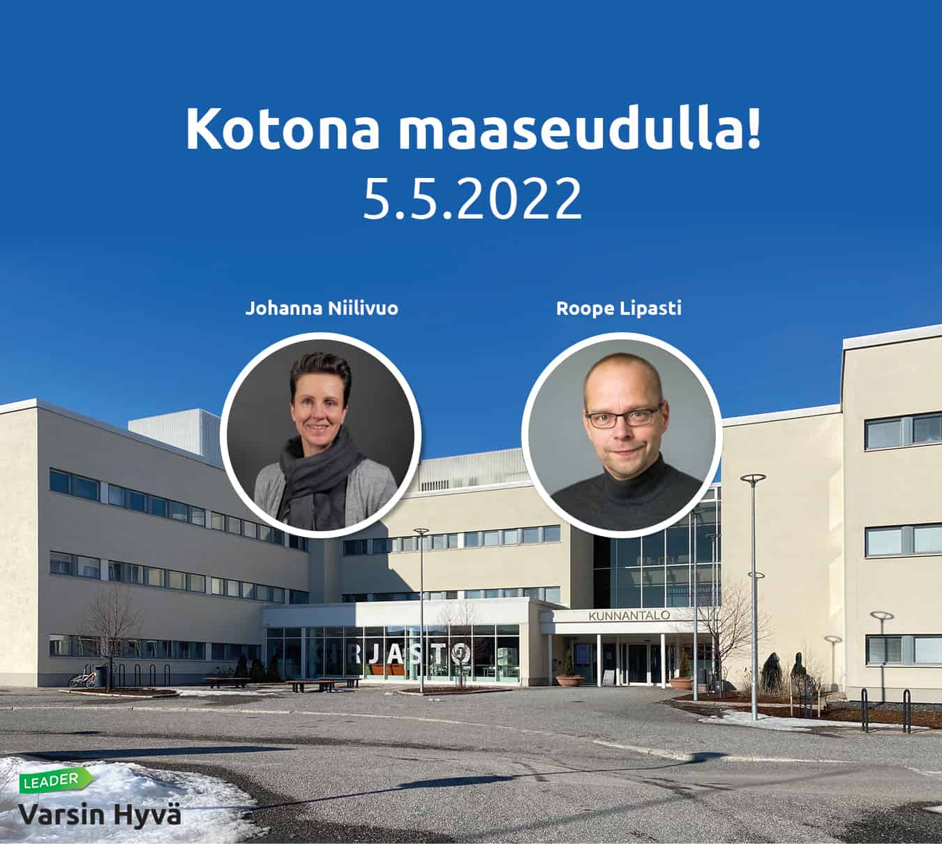 Leader Varsin Hyvä järjestää Liedon kunnantalon ravintolassa Kotona maaseudulla! -nimisen tilaisuuden torstaina 5. toukokuuta. Kahvitus alkaa klo 17.30 ja ohjelma klo 18. Osallistua voi myös etäyhteydellä.