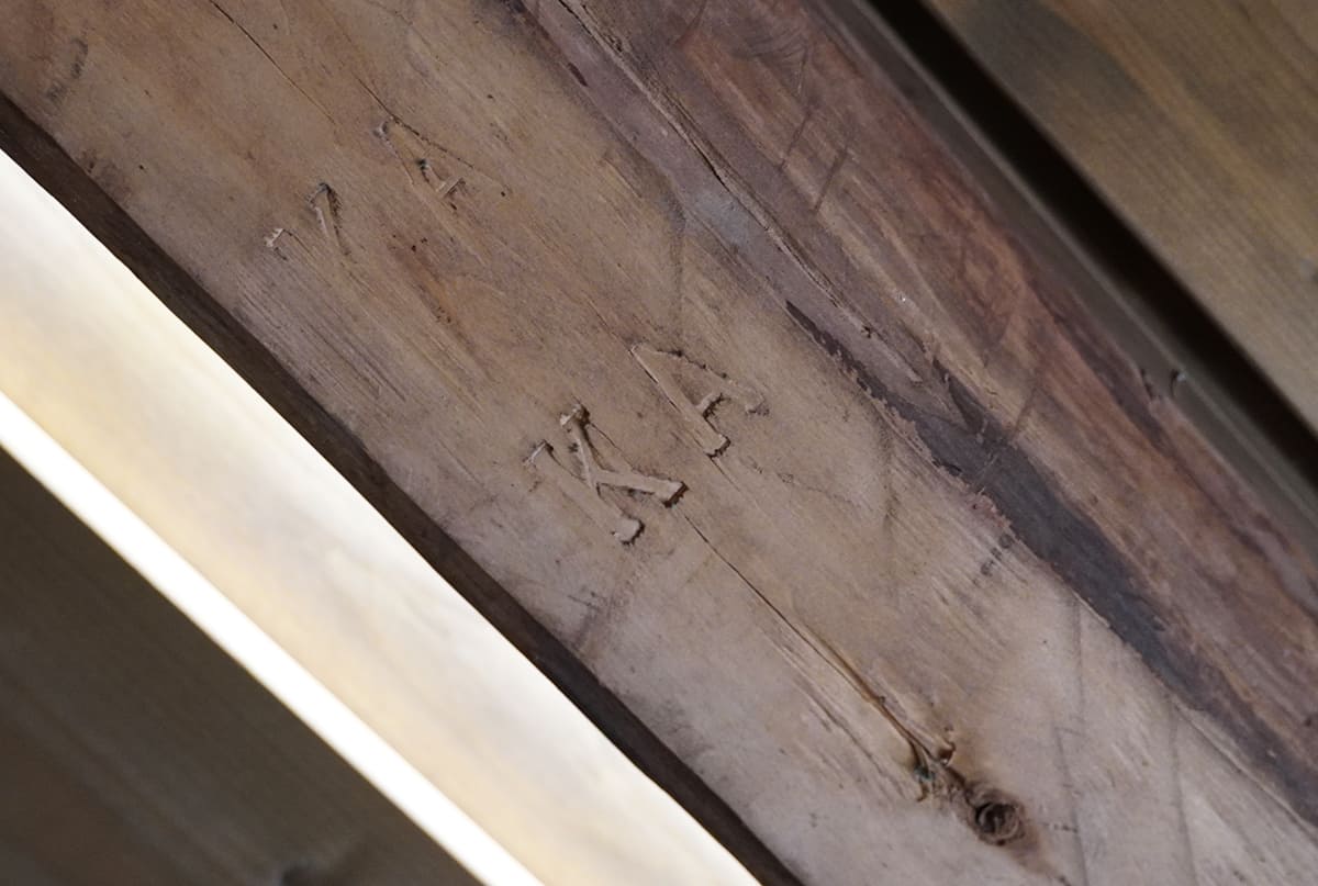 Hirsissä olevat nimikirjaimet muistuttavat historiasta.