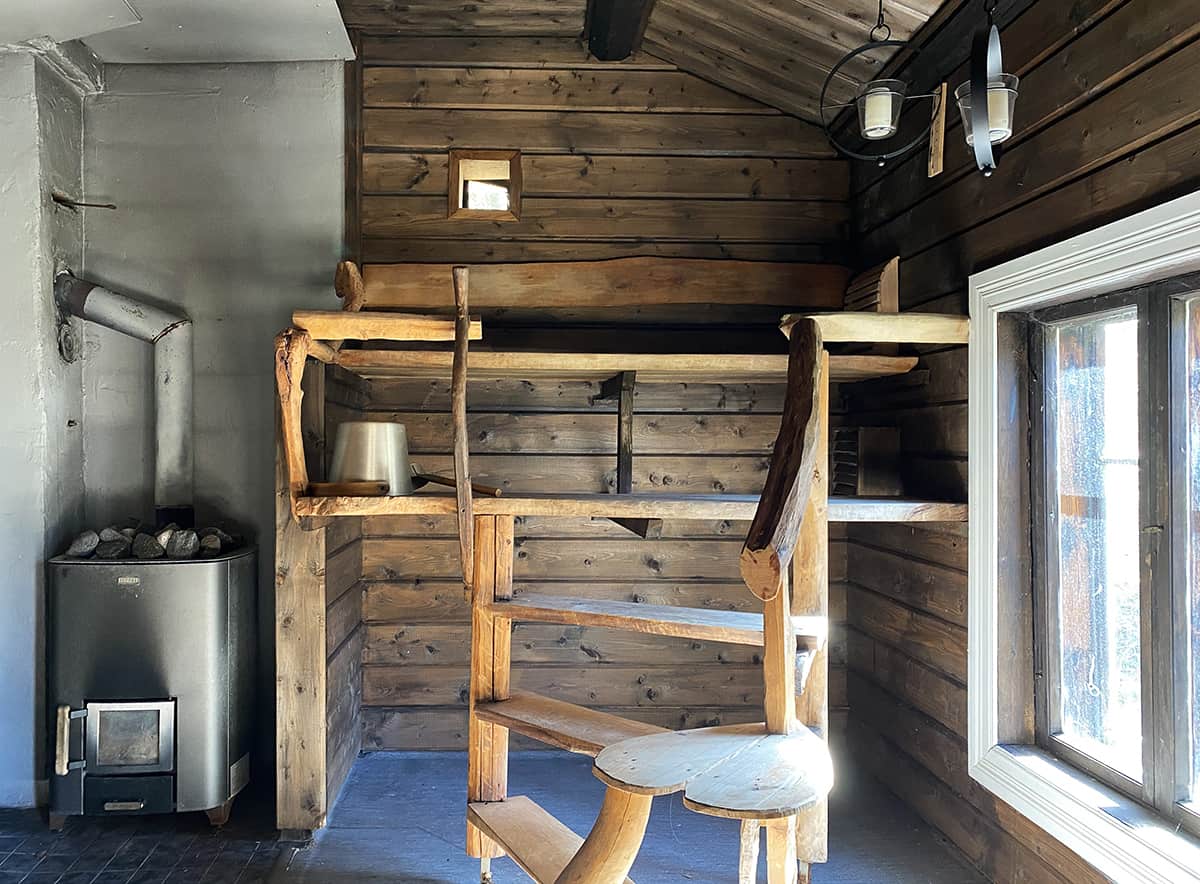 Vanha ja tunnelmallinen puusauna on myös majoittujien käytössä.