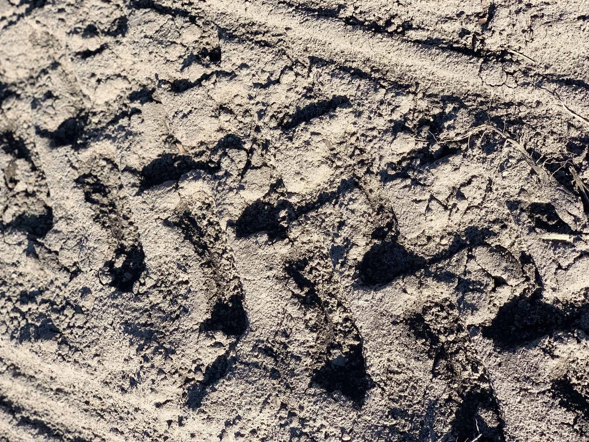 Maata, jossa näkyy traktorin jäljet.