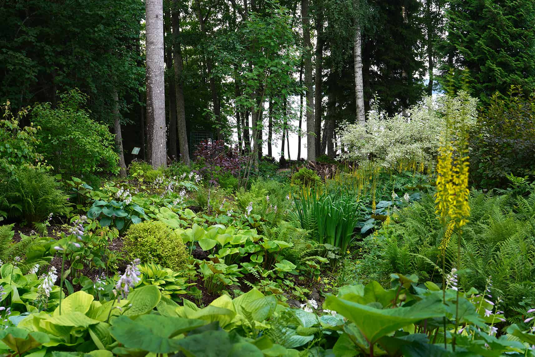 Kantopuutarha on oiva paikka rentoutua. Vaikka katse hakeutuu helposti järvelle, kannattaa kiinnittää huomiota myös yksityiskohtiin. Kantojen lisäksi alueella on 14 erilaista saniaista ja useita erilaisia kuuliljoja.