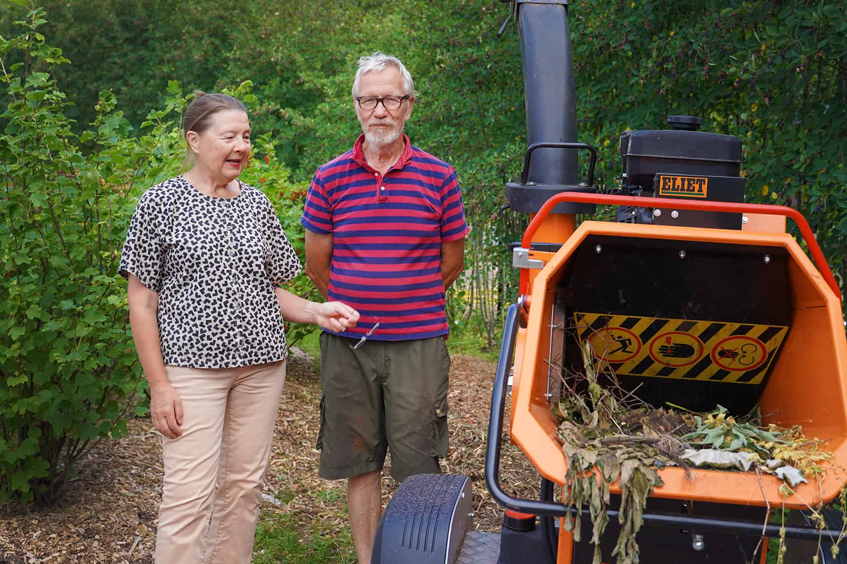 Biomurskain on pariskunnan mukaan heidän paras hankintansa. Sen avulla kitkentä- ja karsintajätettä ei tarvitse enää kuljettaa mihinkään, mikä säästää aikaa, rahaa ja ennen kaikkea ympäristöä. Puistossa syntyy viherjätettä joka päivä monta kottikärryllistä. Nyt se kaikki murskataan pieneksi omalla biomurskaimella, minkä jälkeen aurinko kuivattaa jätteen ja se maatuu nopeasti.