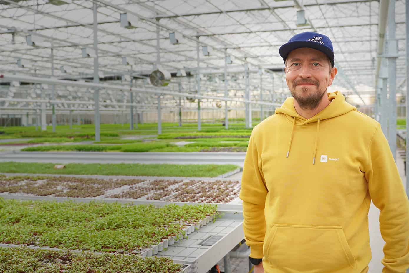 – Kaikki alkoi, kun he kyllästyivät kurkun viljelyyn ja halusivat kokeilla jotain muuta. Kurkkujen jälkeen täällä viljeltiin baby leaf -salaatteja kauppoihin. Sen jälkeen huomattiin, että tällaista tuotettahan ei ole ravintoloille ollenkaan, Niko Honkanen kertoo.