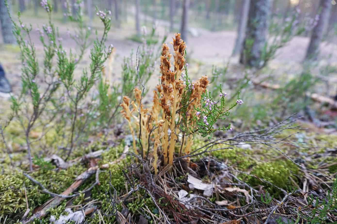 Luontokuvaaja Erkki Kallio koulutti luonto-oppaita Harjureitillä elokuussa 2020. Koulutukset järjestivät Leader Jokivarsikumppanit ja Leader Pyhäjärviseutu osana Outdoor Leader -hanketta. Kuvassa oppaat ovat kerääntyneet ihastelemaan mäntykukkaa.Mäntykukan voi löytää nimensä mukaan männyn juurelta. Kyseessä on loiskasvi, joka saa ravintonsa männyltä sienirihmaston välityksellä.