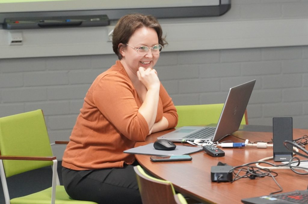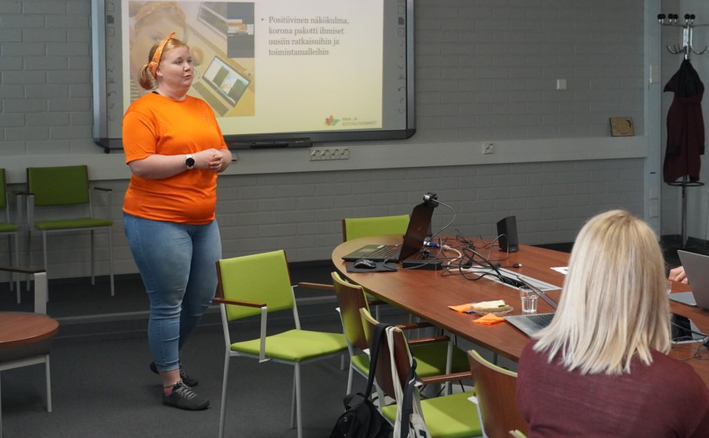 Janita Kylänpää piti puheenvuoron sosiaalisen median käytöstä hankeviestinnässä.