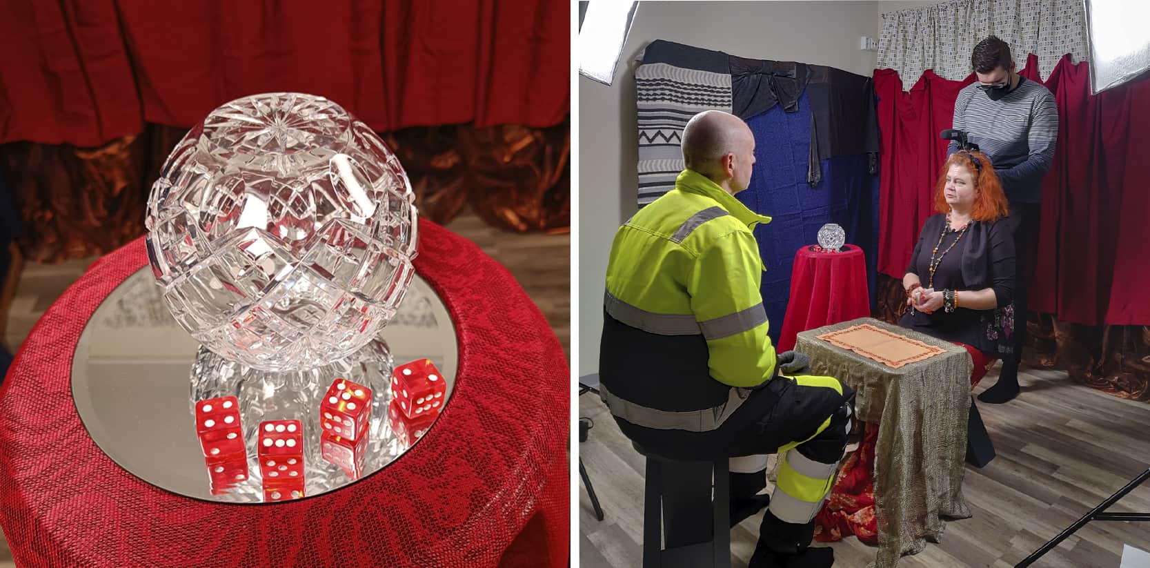 Hankkeessa tutkitaan kylien tulevaisuutta – mutta ei kristallipalloon katsomalla, kuten näissä kuvauksissa. Kuvat: Anu Pekanniemi.