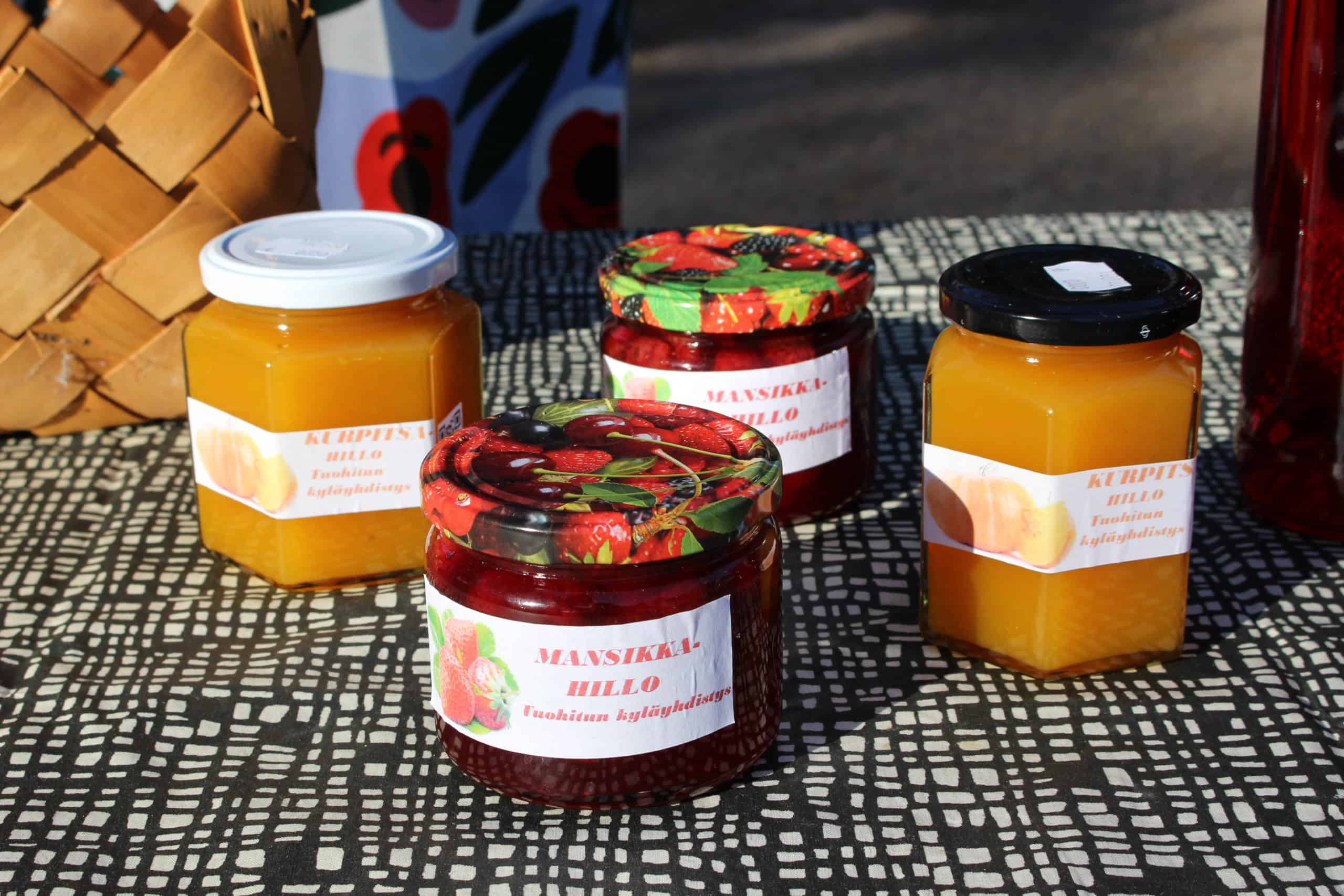 Tuohitun kyläyhdistyksen valmistamia hilloja.